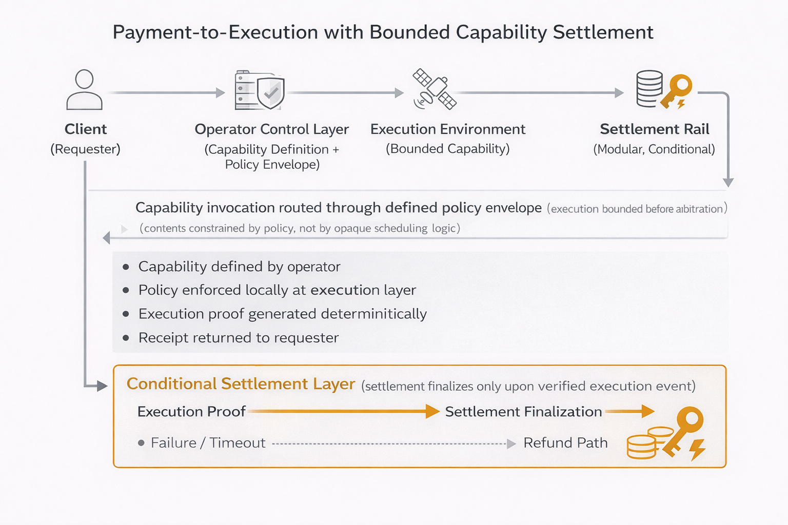 This memorandum examines how binding financial settlement directly to cryptographically constrained execution, referred to here as payment-to-execution, aligns economic incentives with operational reality.
